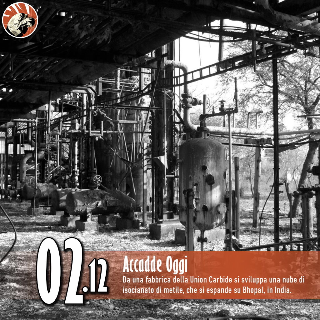 Da una fabbrica di pesticidi di proprietà della multinazionale americana Union Carbide si sviluppò una nube di isocianato di metile, che si espanse su una zona densamente popolata dell’India, nella città di Bhopal. I morti sul momento furono circa 3000, ma il bilancio sale oltre i 15000 se si contano coloro che morirono nel periodo seguente per le conseguenze dell’intossicazione.