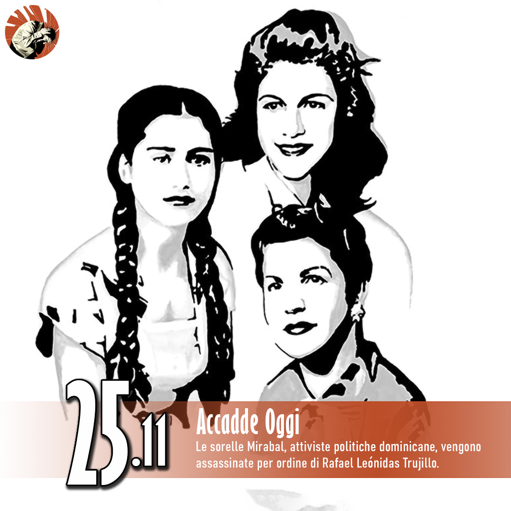 Nel nostro paese e nel mondo il 25 di novembre si commemora il Giorno Internazionale della Non Violenza nei Confronti della Donna. La commemorazione di questa data ha origine al primo Incontro Internazionale Femminista, celebrato in Colombia, nell’anno 1980. In quell’incontro la Repubblica Dominicana propose questa data in onore alle tre sorelle Dominicane Patria, Minerva e Maria Teresa Mirabal. In modo progressivo, molti paesi si sono uniti nella commemorazione di questo giorno, come simbolo del clamore e della denuncia di fronte al maltrattamento fisico e psicologico verso le donne e le bambine. Nel 1998, l’assemblea Generale delle Nazioni Unite ha approvato all’unanimità la internazionalizzazione della commemorazione di questa data. Il 17 dicembre 1999 l’Assemblea Generale delle Nazioni Unite approvò la risoluzione 54/134 con cui scelse la data del 25 novembre per la Giornata internazionale per l’eliminazione della violenza contro le donne, in omaggio alle sorelle Mirabal.