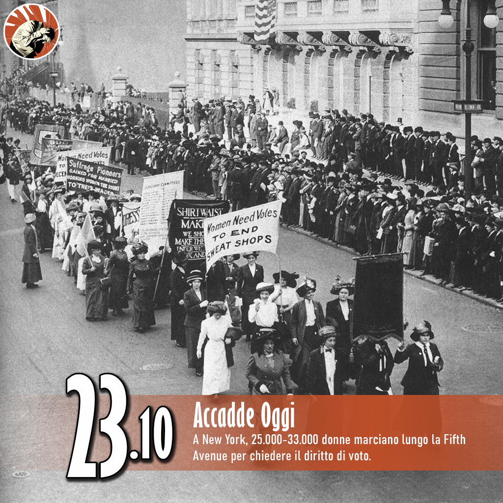 A New York, 30.000 donne marciano lungo la Fifth Avenue per chiedere il diritto di voto.