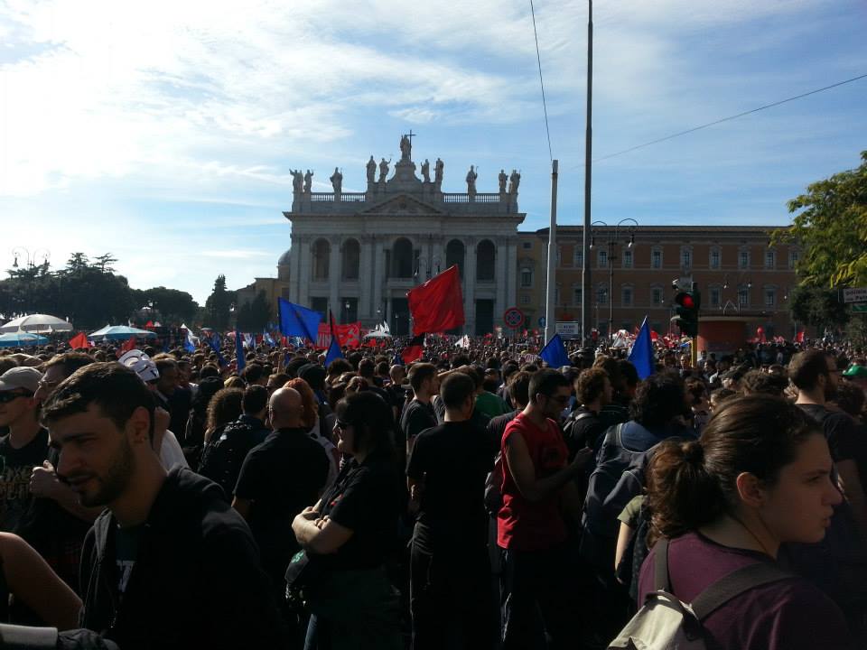 A Piazza San Giovanni il sole scalda, quasi come la gente che sta convergendo qui da tutta Italia. Sono tantissimi, e come me hanno affrontato ore di pullman o di treno, partenze a ore impossibili e controlli della polizia per essere pronti a partire da qui alle 14:30.